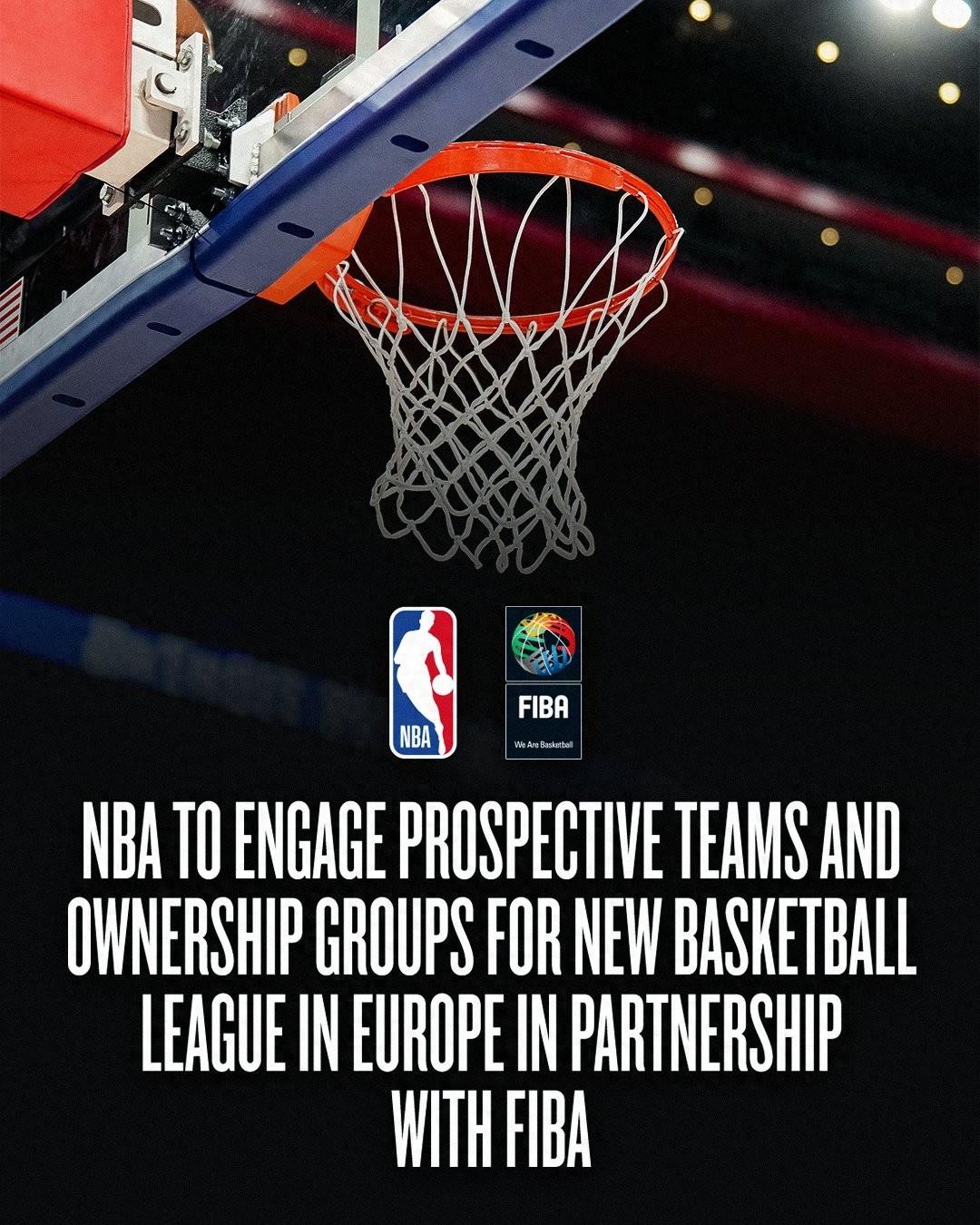 NBA和FIBA今天宣佈,將於明年1月共同推進一項新的泛歐洲男子職業籃球聯賽的聯合探索計劃,屆時將與有意加入的球隊和所有權集團接洽。