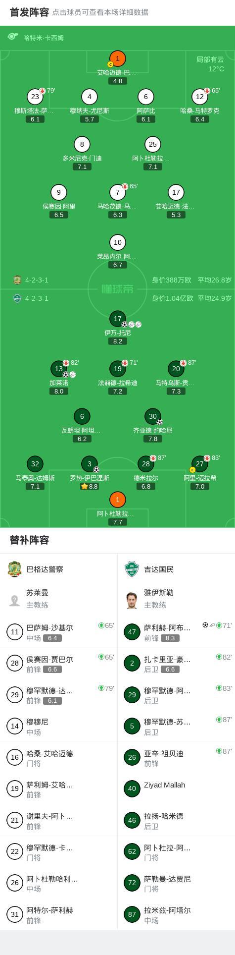 吉達國民5-0血洗巴格達警察,齊亞德-約哈尼破門,薩利赫-阿布沙馬特替補傳射