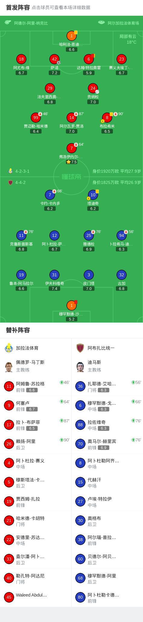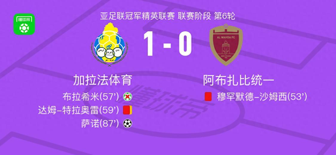 加拉法體育1-0阿布扎比統一,薩諾絕殺