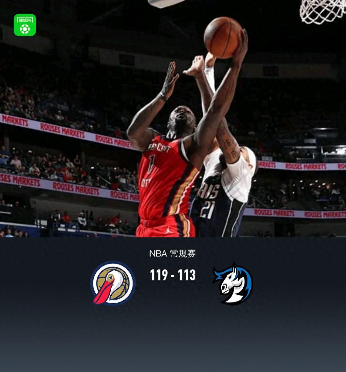 北京時間12月23日NBA 常規賽,新奧爾良鵜鶘對陣達拉斯獨行俠。開場鵜鶘率先取得兩位數領先,隨後獨行俠在濃眉領銜下反超比分,半場獨行俠63-57鵜鶘,末節獨行俠一度領先11分,隨後鵜鶘普爾、錫安相繼領銜高潮完成逆轉,最終鵜鶘119-113逆轉獨行俠迎5連勝。