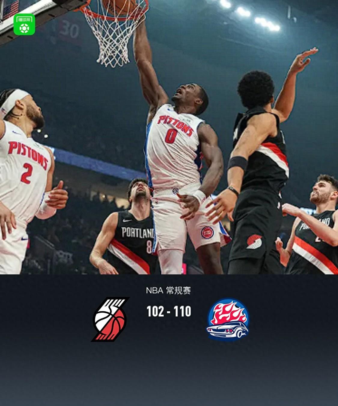 北京時間12月23日NBA 常規賽,波特蘭開拓者對陣底特律活塞。半場開拓者51-61活塞,三節結束活塞領先17分,末節不久活塞坎寧安6犯畢業,開拓者展開反撲一度反超,但比賽最後3分多鐘開拓者連續丟後場板失誤罰球不中,活塞一波11-2直接收下比賽,最終開拓者102-110活塞。
