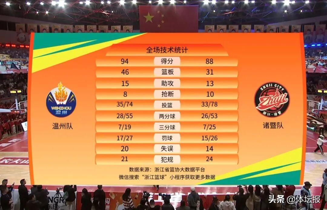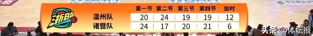 加時賽中,雙方開啓了對攻模式。溫州隊最多時領先5分,諸暨隊又將比分迫近。最後48秒戴子特三分命中,溫州隊領先6分。隨着諸暨隊的三分偏出,溫州隊鎖定勝局。