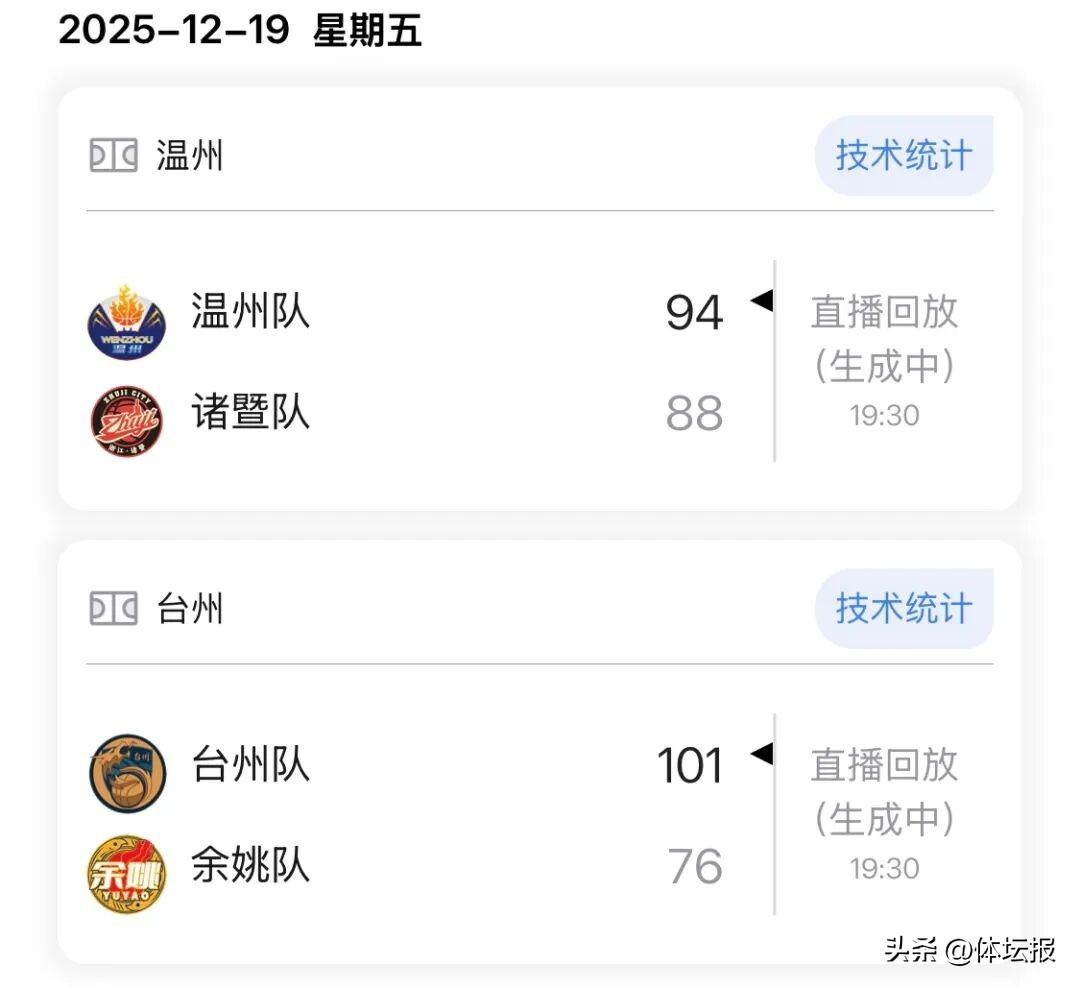 本週,大部分球隊將迎來2025年的最後一場比賽!其中幾場強強對決備受關注:12月25日蒼南vs富陽、12月26日杭州vs溫州、12月27日諸暨vs台州。本週賽程如下↓