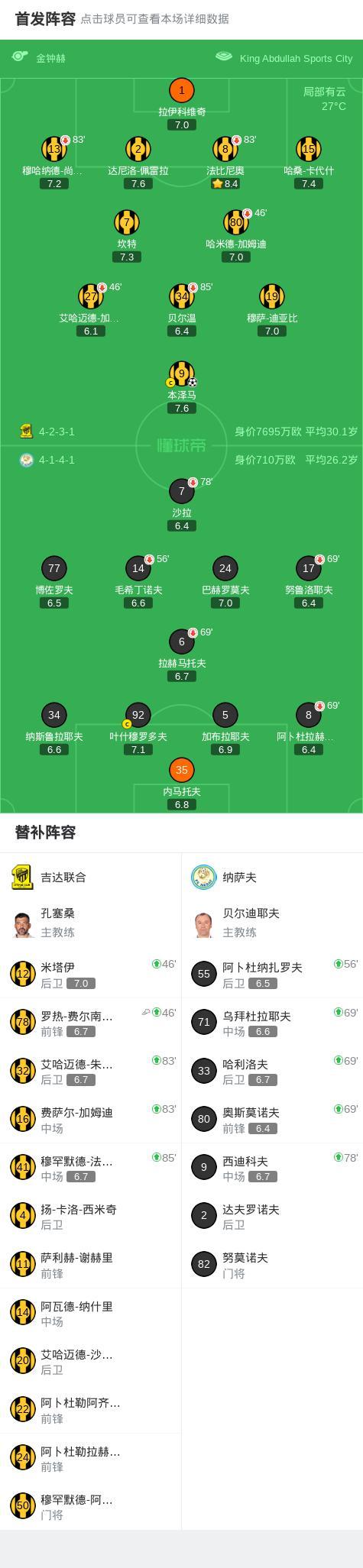 吉達聯合1-0納薩夫,本澤馬一劍封喉
