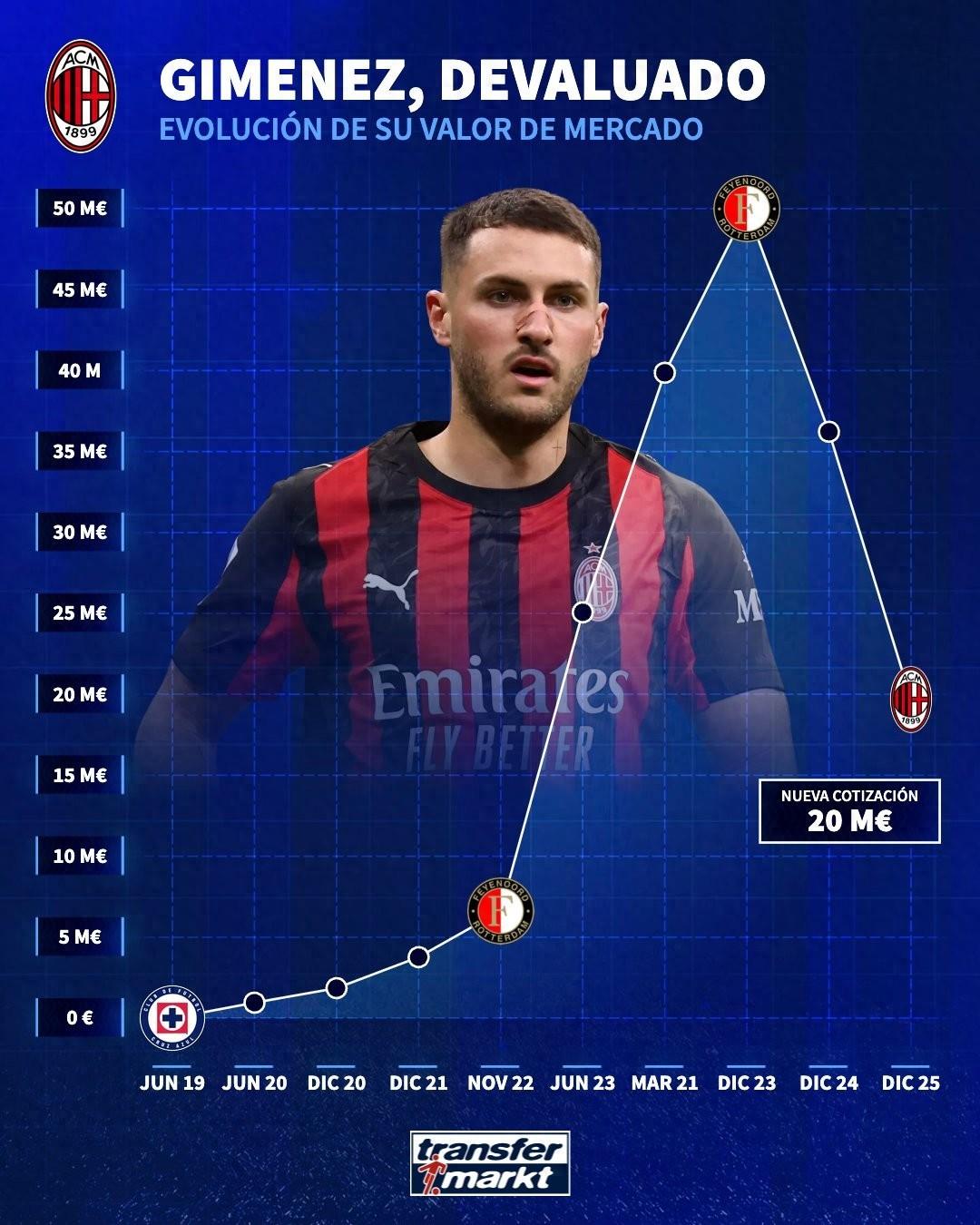 現年24歲的聖地亞哥-希門尼斯今年2月以3020萬歐元的價格從費耶諾德轉會至米蘭,不過本賽季至今他代表紅黑軍團出場11次,僅僅貢獻1球1助攻。