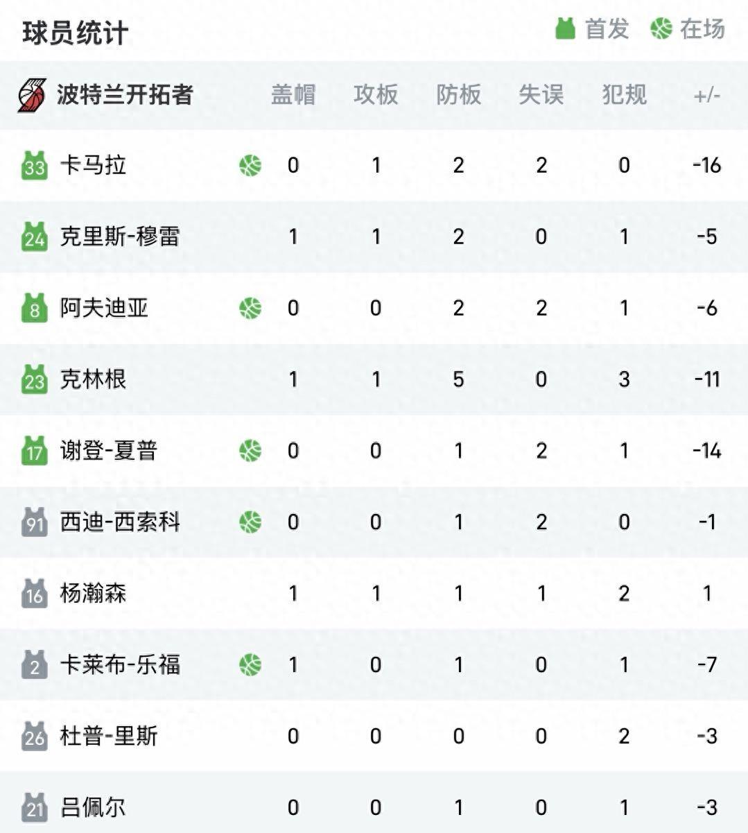 值得一提的是,楊瀚森是前兩節比賽中開拓者隊唯一一名正負值爲正的球員,這也彰顯了他在場時段的影響力。除了一些數據能體現的內容外,楊瀚森還有到底拼搶地板球的表現,更加突出了他的比賽態度。