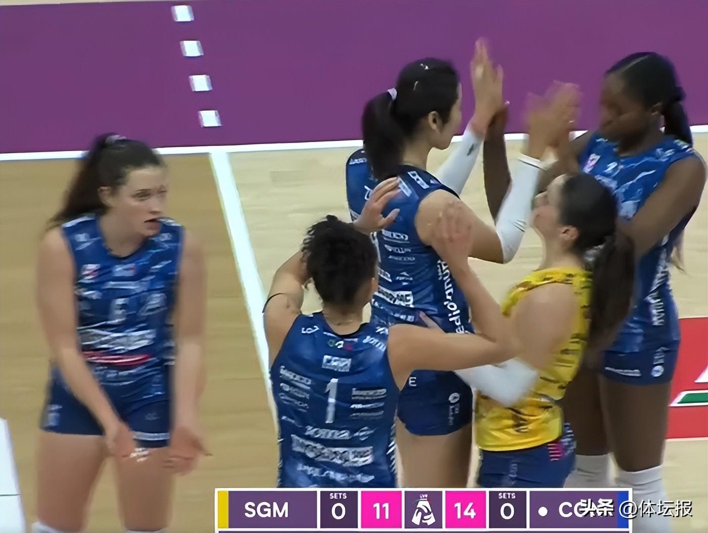 在本輪意甲中,中國女排的兩代主攻所代表的球隊賽場碰面。前兩局,科內利亞諾隊掌控比賽局勢,25比23、25比17連下兩局。聖喬瓦尼隊在第三局伊始佔據比分優勢,最終還是被對手翻盤,19比25丟掉後輸掉本場比賽。