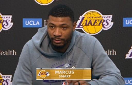 賽後,湖人隊後衛馬庫斯-斯馬特出席了發佈會,他表達了對於本場比賽的感受:“命中率什麼樣,數據什麼樣,這都不重要,你不能只看這些。我們必須明白,因爲我們身穿湖人球衣,所以所有人都想置我們於死地。”