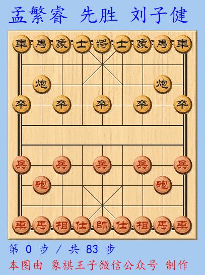 孟繁睿執先手與劉子健之戰,紅方誌在奪勝,使出了中炮急進中兵的的極其兇狠下法,可以看出,孟繁睿對這盤棋的重視。