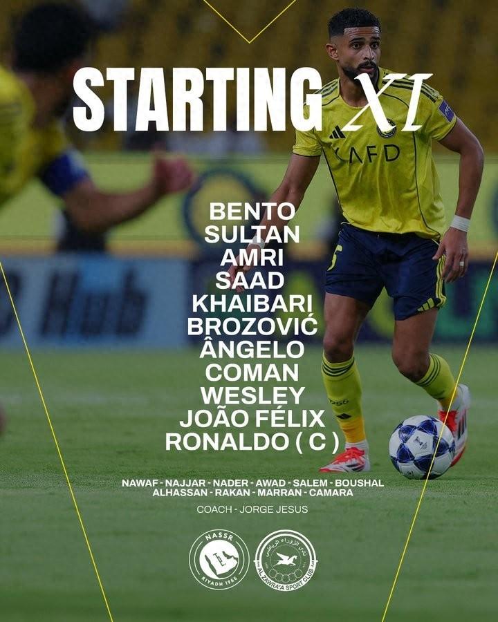 北京時間12月25日0:00,亞冠二級小組賽第6輪,利雅得勝利主場對陣祖拉。賽前首發公佈,C羅先發迎個人亞冠二級賽事首秀。