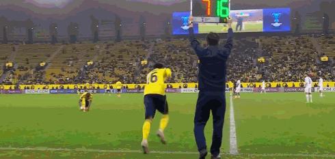 第13分鐘,博爾熱斯倒三角傳球,科曼搶點破門,利雅得勝利1-0