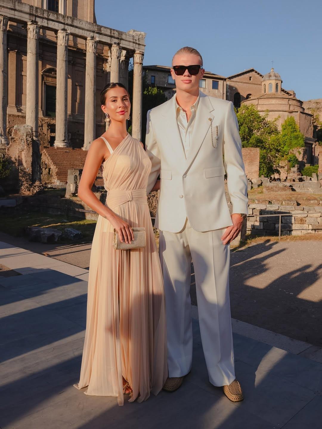 哈蘭德身穿全黑服裝,伊莎貝爾則身着酒紅色長裙,周圍點燃着蠟燭,擺放着紅色花束。然而,球迷們很快就用一些俏皮話回應,提到了瓜迪奧拉最近對球隊的警告,即球員們在假期結束後不要增重。