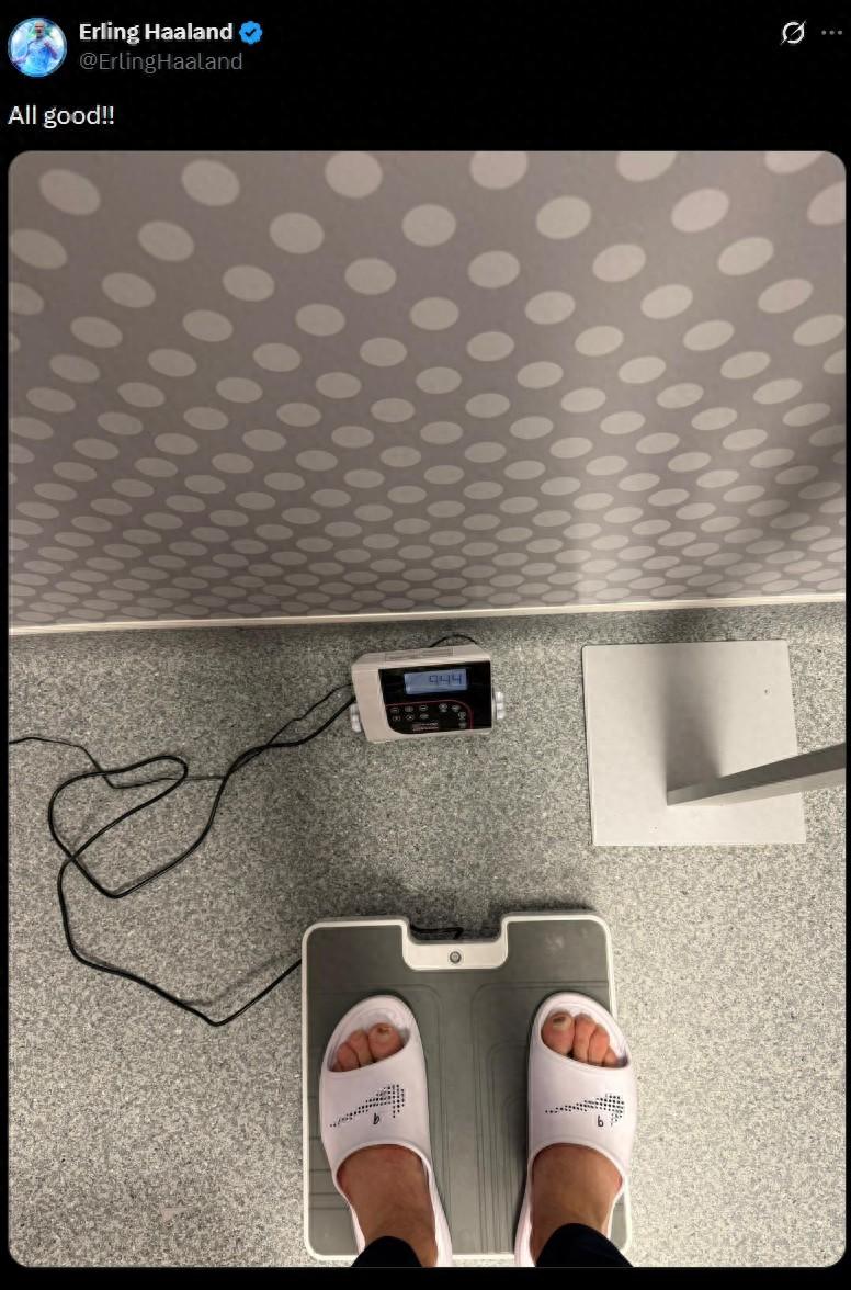 作爲回應,曼城前鋒哈蘭德在社交媒體上發佈了一張自己站在體重秤上的照片,並配文“一切都很好!!”