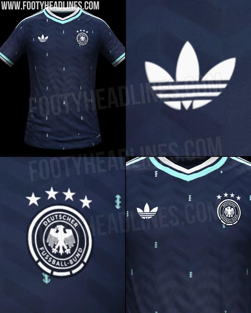 德國世界盃客場球衣實物圖:深海軍藍設計+薄荷綠點綴