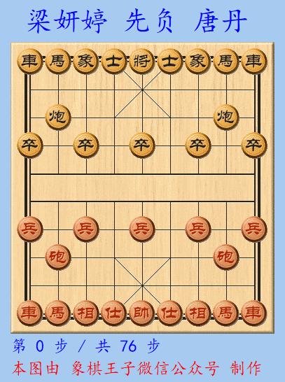 是日之上,女子象棋歷史第一人、十冠王、超級丹唐丹執後手與象棋一枝花,個人賽季軍,實力派美女棋手梁妍婷的一仗。