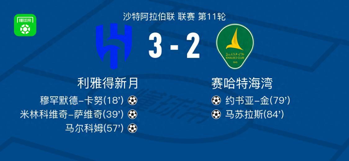 利雅得新月3-2賽哈特海灣,馬爾科姆傳射,米林科維奇-薩維奇破門