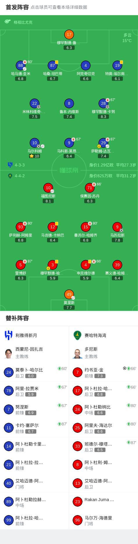 第39分鐘,利雅得新月球員馬爾科姆助攻米林科維奇-薩維奇打入一球。