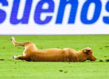 比賽過程中,客隊後衛帕切科受傷倒在地上,這時候有一隻狗跑上了球場,在看到球員倒在地上的姿勢之後,它也順勢躺在球場上,旋轉着模仿他摔倒的動作。