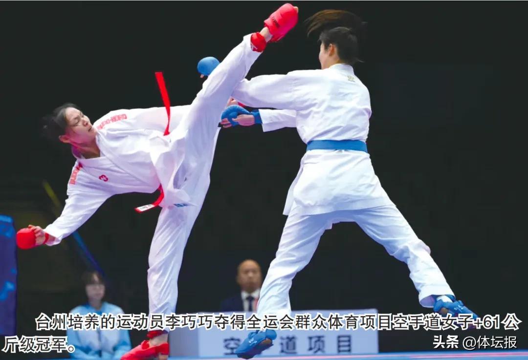 “省隊市辦”方面,落戶天台的省空手道隊更是社會力量辦競技體育的典型。總教練洪軍武告訴記者,由他一手創辦的天台文武職業技術學校成爲“體教社融合”這一創新模式的基礎。一方面,學校通過聘請專業外教、建設訓練場館、舉辦賽事活動等方式,爲空手道運動提供了堅實的硬件保障。另一方面,學校還積極與地方政府、企業、協會等社會各界合作,持續推進和深化體教社融合發展道路。