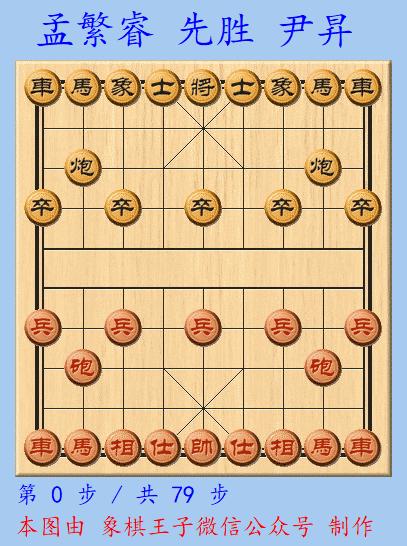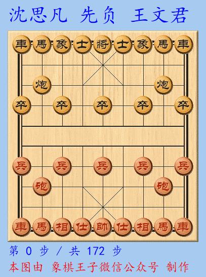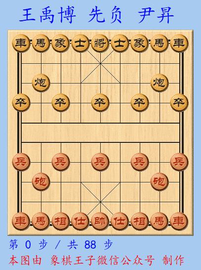男子季軍戰上,王禹博與尹昇相遇,兩人慢棋打平,加賽超快棋,王禹博執先手採取飛相局,尹昇應以左中炮。