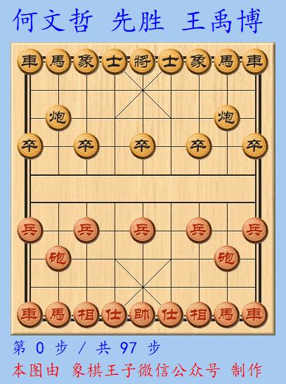 紅方保持多子之力,何文哲打入車馬炮三兵單缺相對車炮3卒士象全,97手多子叫殺取勝,進入決賽。