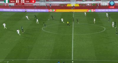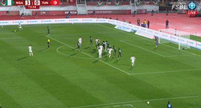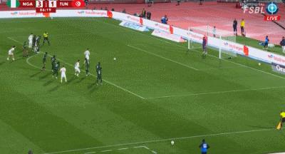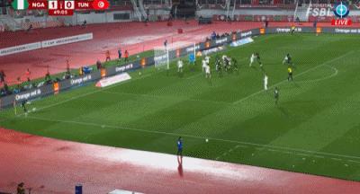 第74分鐘,塔勒比禁區頭球破門,突尼斯1-3尼日利亞