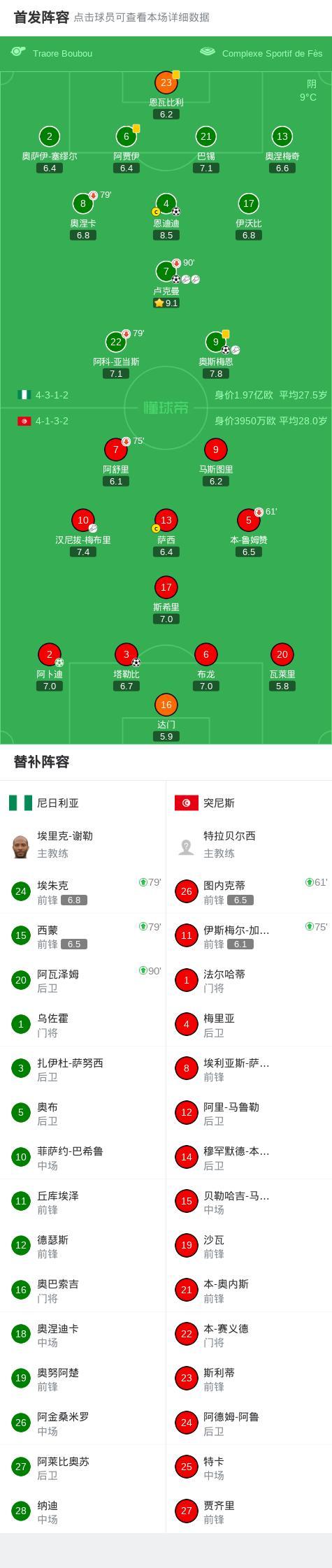尼日利亞3-2突尼斯,奧斯梅恩、恩迪迪、盧克曼建功