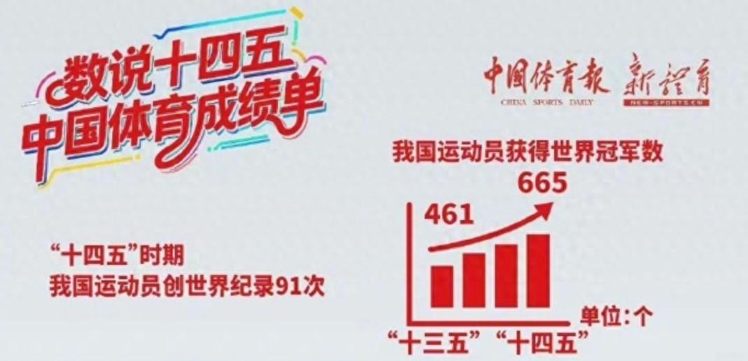 十四五體育成就:共取得世界冠軍665個,創世界紀錄91次
