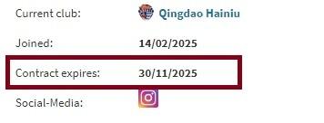 另外,根據德轉的數據信息顯示,巴西中場菲利佩-奧古斯托與青島海牛俱樂部的合同已經在今年11月30日到期。