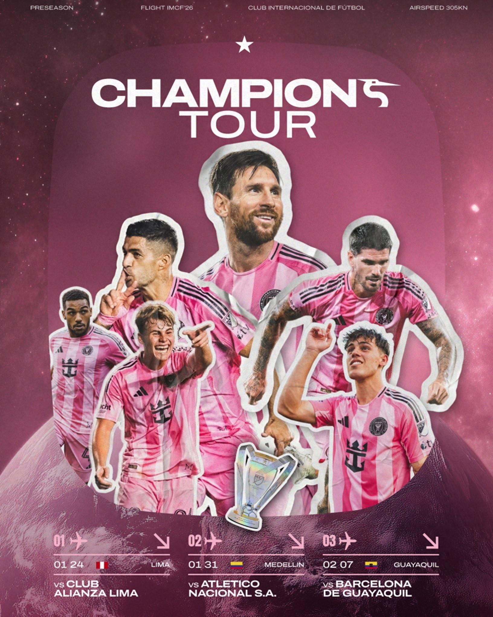 北京時間12月28日,邁阿密國際公佈了新賽季的季前賽賽程,他們將在1月底至2月初分別前往祕魯、哥倫比亞與厄瓜多爾。