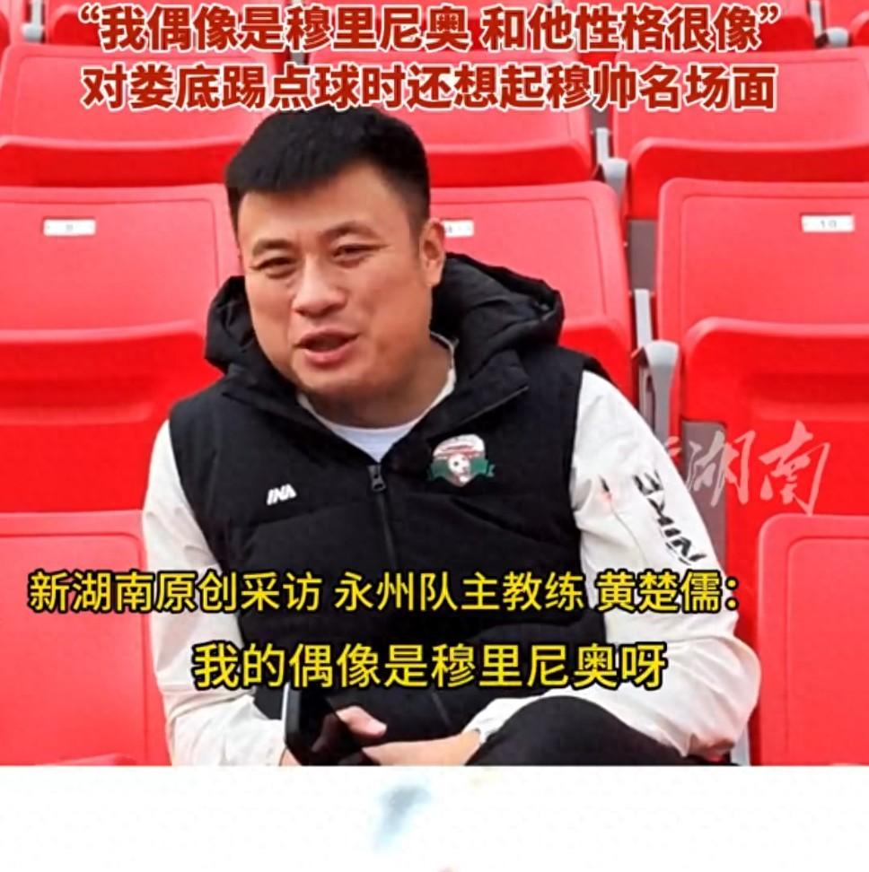 早在12月17日,本屆湘超冠軍永州隊主教練黃楚儒在接受《新湖南》記者獨家專訪時,曾表示,自己是穆里尼奧的人迷,十分欣賞穆尼尼奧的執教風格以及個人魅力。