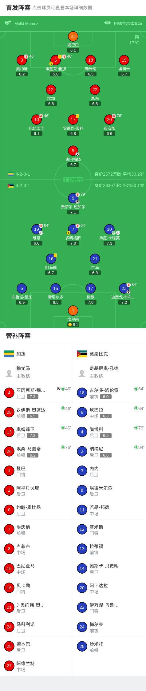 莫桑比克3-2加蓬,熱尼-卡塔莫1射1傳,迪奧戈-卡布拉爾破門