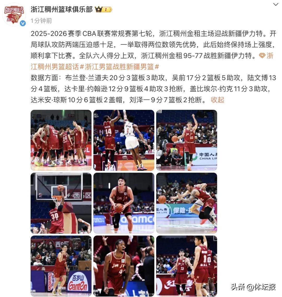 CBA | 6人得分上雙,浙江稠州男籃大勝新疆