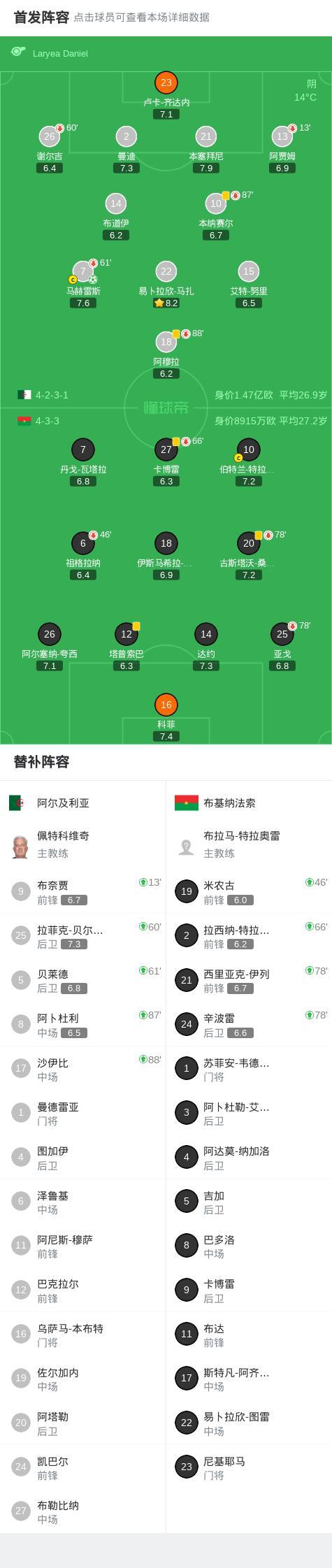 阿爾及利亞1-0布基納法索,馬赫雷斯點射制勝