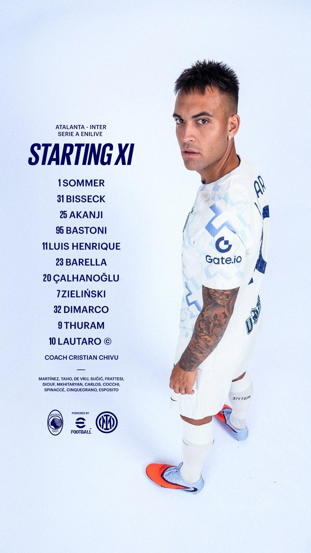 國米首發:1-索默、31-比塞克、25-阿坎吉、95-巴斯托尼、11-路易斯-恩裏克、23-巴雷拉、20-恰爾汗奧盧、7-澤林斯基、32-迪馬爾科、10-勞塔羅-馬丁內斯、9-馬庫斯-圖拉姆