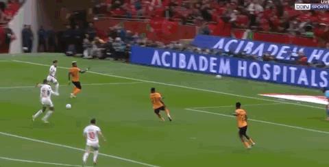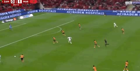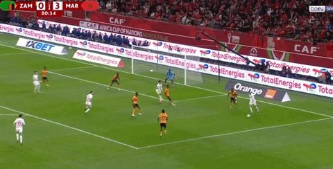 第51分鐘,摩洛哥開出任意球,卡埃比無人盯防倒掛金鉤破門!摩洛哥3-0