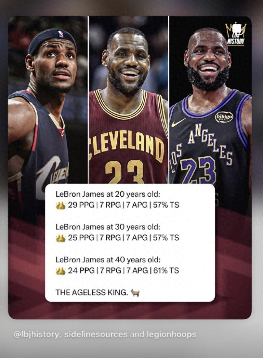40歲時:場均24分7籃板7助攻,真實命中率61%