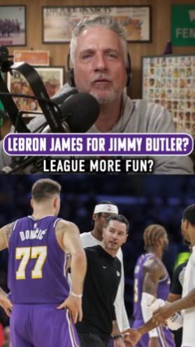 在最新一期的The Ringer播客節目中,NBA名記Bill Simmons談到了湖人與勇士的情況,他認爲兩支近況不佳的球隊應該交換球星,他提出了一個方案:用勒布朗-詹姆斯與吉米-巴特勒互換。