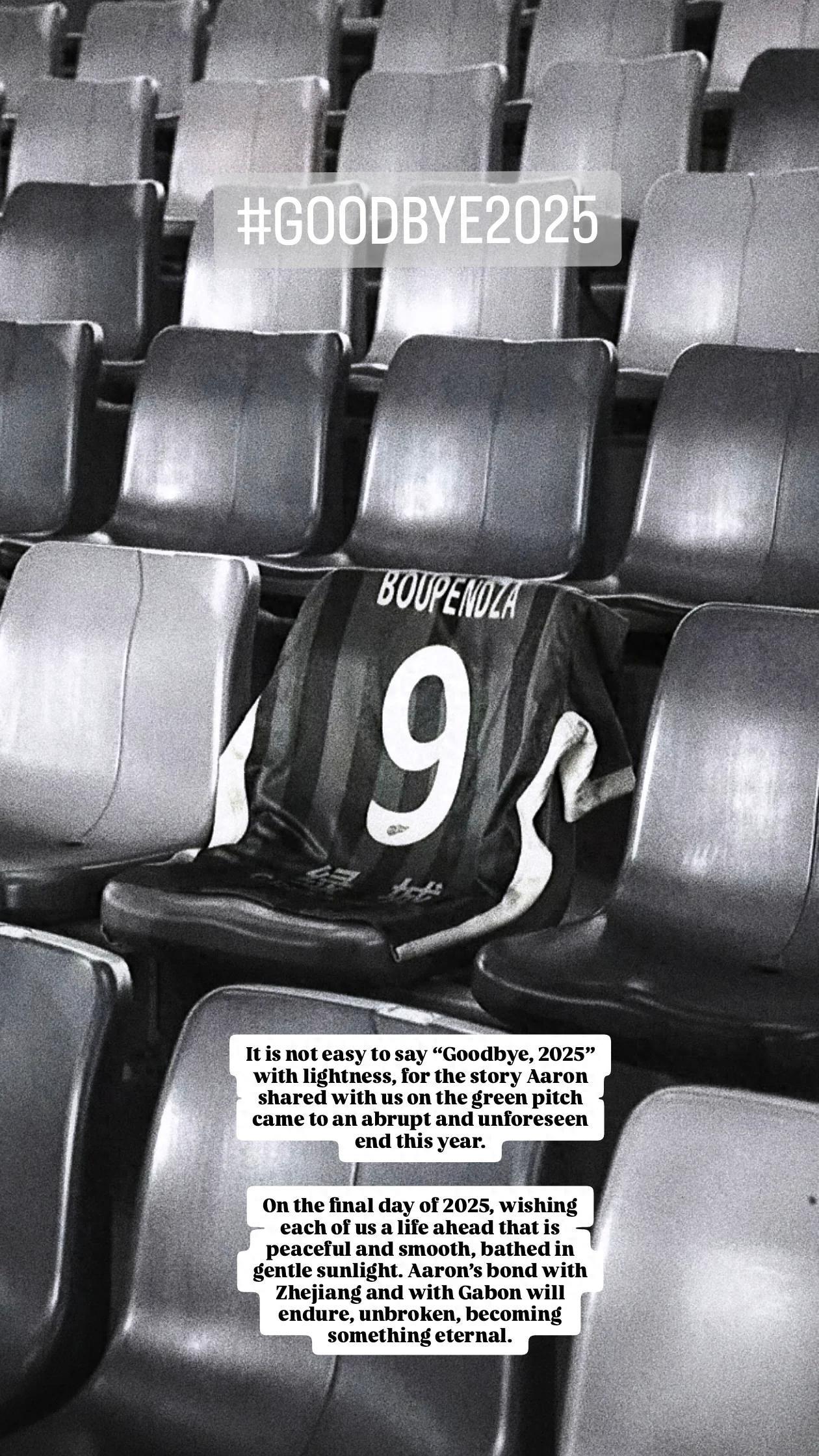 浙江隊官方寫道:“想要輕鬆地道一句‘再見,2025’,實在太難。只因這一年,阿隆-布彭紮在綠茵場上與我們並肩書寫的故事,卻猝不及防的戛然而止。