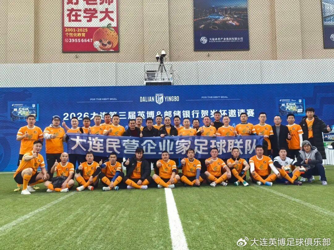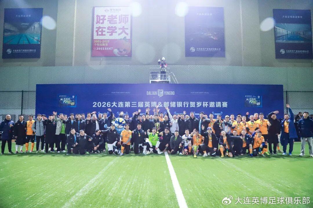 爲助力足球事業振興,同時迎接嶄新一年的到來,2025年12月31日,“2026大連第三屆英博&郵儲銀行賀歲杯邀請賽”在大連足球青訓基地室內足球場北館舉行。大連市政協副主席、市工商聯主席、市足改工作組副組長李延鋒,大連市體育局黨組成員、副局長、大連市足協副主席兼祕書長王文勇等領導蒞臨現場,併爲比賽開球,共同拉開這場歲末足球盛宴的帷幕。比賽結束後,大連市委統戰部副部長、市工商聯黨組書記趙日強爲冠軍隊伍頒獎。
