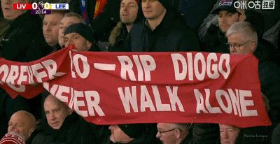 第21分鐘,比賽第二十分鐘,球迷舉起紀念若塔的橫幅