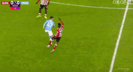 第34分鐘,福登橫傳失誤,馬延達打門踢偏