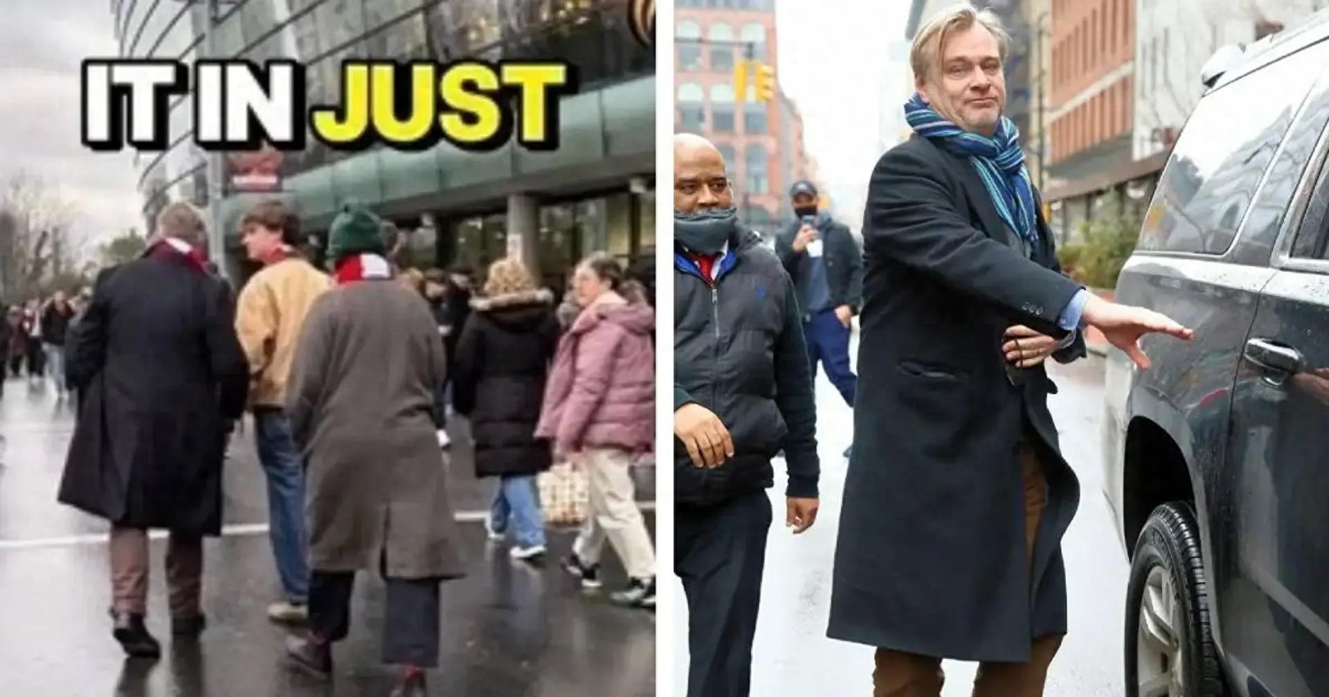 在阿森納與維拉的英超第19輪比賽中,知名導演諾蘭現場觀戰,而在場外,他還被拍到圍着紅白色的圍巾(圖片左邊),這讓球迷們相信他是一名阿森納球迷。