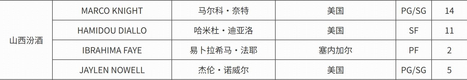 據官網顯示,山西成功註冊37歲後衛馬爾科-奈特,並取消註冊阿什頓-黑根斯。