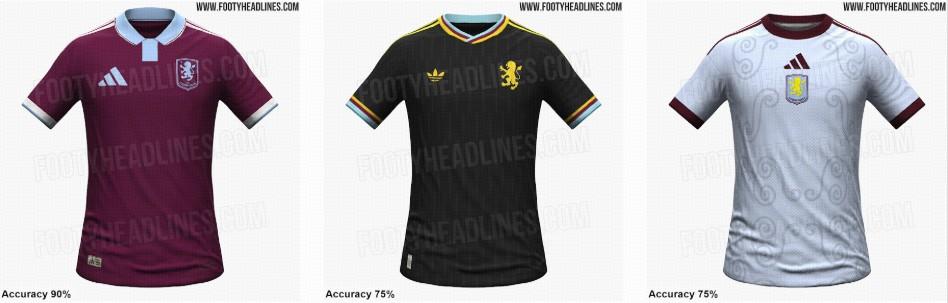 下賽季,阿斯頓維拉預計推出一款沒有傳統天藍色插袖設計的純酒紅色球衣,領口設計與弗拉門戈和芝加哥火焰隊相同。客場球衣預計爲黑色,配以黃色、酒紅色和天藍色的領口細節及獅子隊徽。第三球衣則爲淺藍色,飾有漩渦印花和居中隊徽。