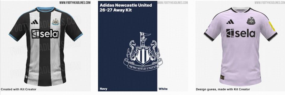 紐卡斯爾聯下賽季球衣設計僅爲初步預測版本。主場球衣延續了經典的黑白條紋圖案,搭配淺藍色三條紋。而客場球衣的主色調爲海軍藍拼接白色。第三球衣預測爲純白設計,搭配黑色細節。