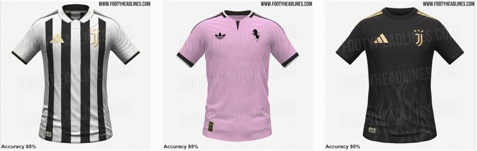 尤文圖斯將在下賽季發佈一款非常優雅的主場球衣,以白色、黑色和金色爲主色調,並配有Polo領。客場球衣爲粉色搭配黑色和白色,第三球衣則爲黑金配色。