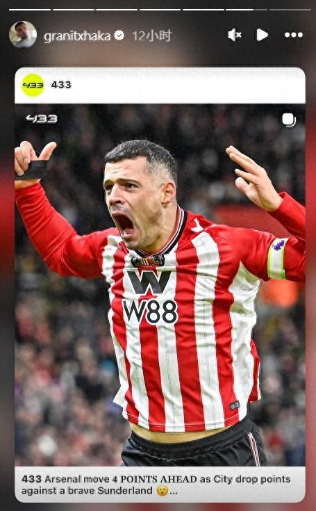英國媒體《433》發佈的扎卡海報,配文寫道:阿森納領先4分,曼城對陣頑強的桑德蘭意外丟分……