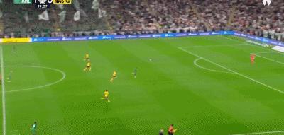 第12分鐘,邁拉希半空門機會,皮球偏出球門
