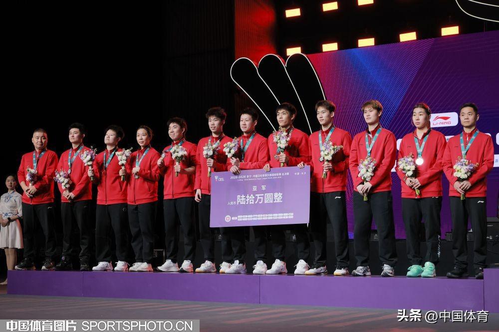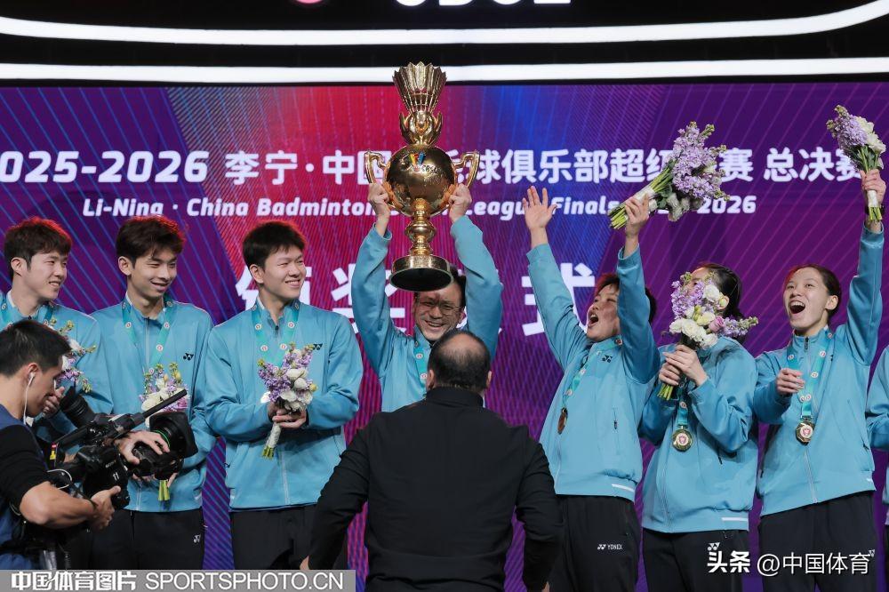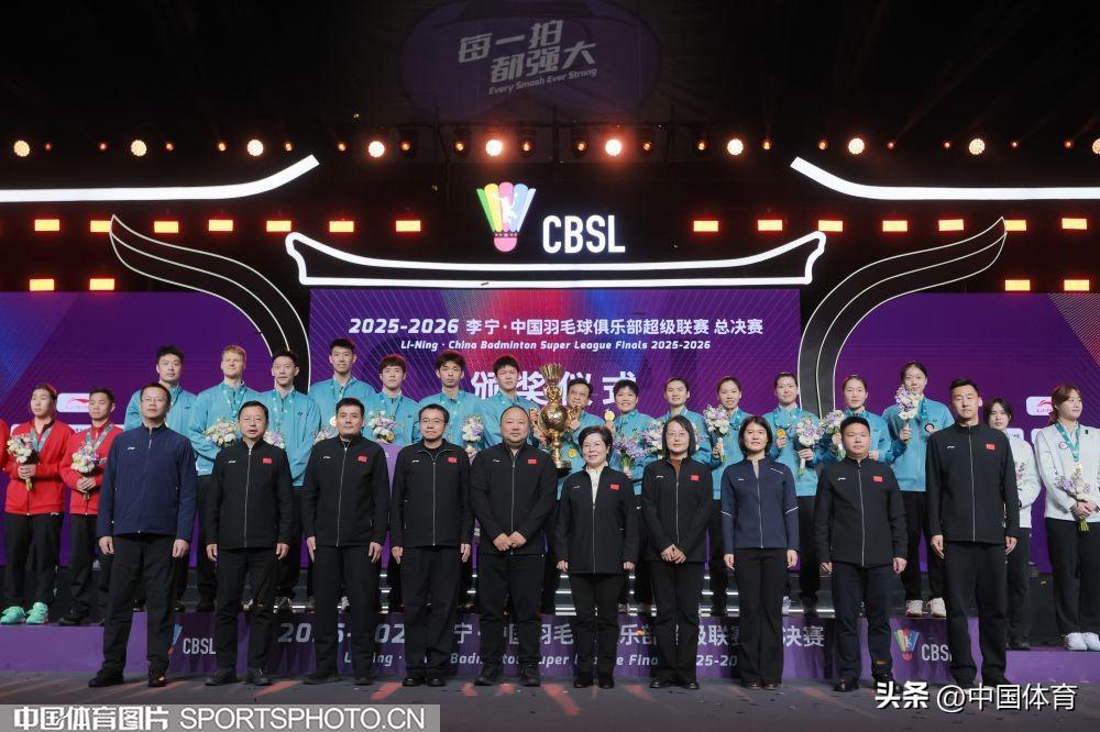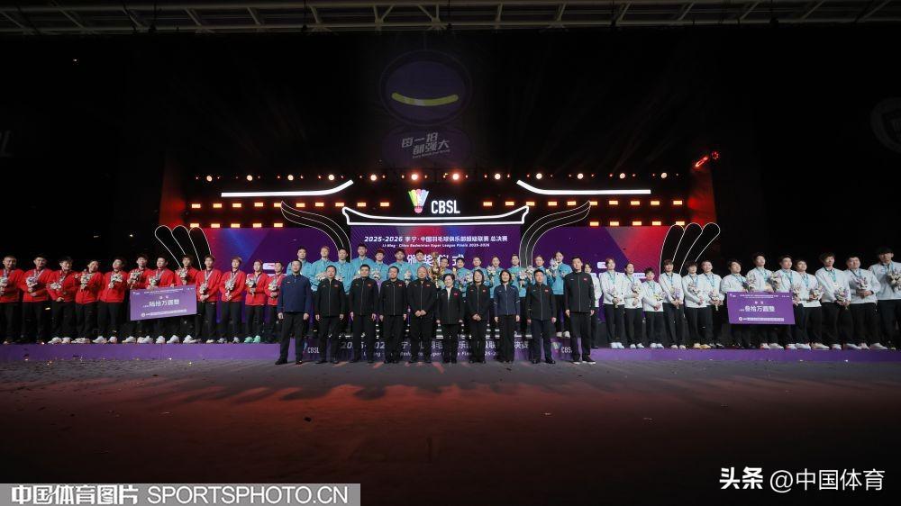 中國體育訊 2026年1月2日晚,2025-2026中國羽毛球俱樂部超級聯賽總決賽頒獎儀式在長沙市中南大學體育館舉行。這場盛典不僅是對賽事精彩對決的完美收官,更是對各支球隊拼搏精神的至高禮讚。(中國體育圖片 鹿麟 攝)
